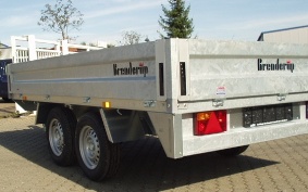 Brenderup/Thule 5000: neue Profiserie, Aluminiumbordwände eloxiert, auch als Plattform nutzbar, auch für Baggertransport geeignet.